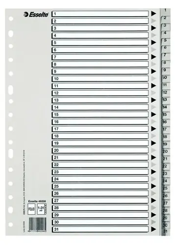 Alta Calidad Indice Esselte Pp Numerico Fº Pestañas 1-31 16 Taladros Gris con Ind. b/n