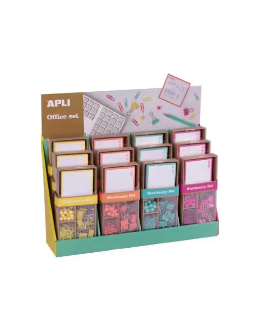 APLI EXPOSITOR12 SETS DE OFICINA – PINZA, CLIP, AGUJA Y NOTAS – 17684 Envío Internacional