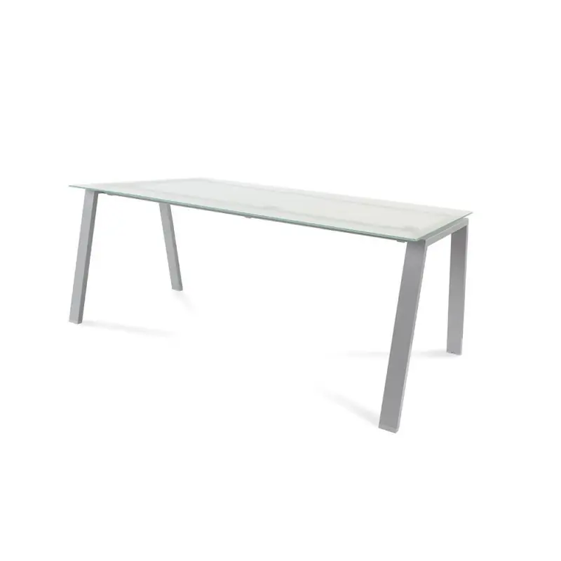 Mesa individual que combina funcionalidad con elegancia. Mesa recta con estructura de patas inclinadas, fabricada en tubo de acero. Opción de tablero de melamina de 25mm. de grosor canteado en PVC o sobre de cristal templado de alta resistencia. Mesa ideal para oficinas individuales como para grandes espacios de coworking. Altura de 74cm., con niveladores para levantar la mesa 2cm. más.