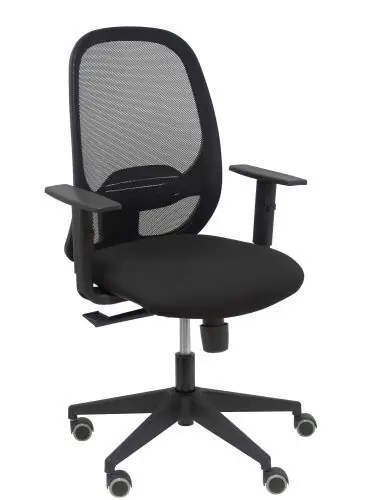 Artesanal Silla Piqueras y Crespo Cilanco Negra Uso Intensivo Brazos Regulables Mecanismo Sincro con Regulador de Tension Refuerzo Lumbar Regulable Ruedas Parquet Respaldo de Malla Negra y Asiento Tapizado Bali