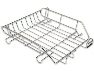 Bandeja de oficina metálica cromada. Con portatarjeta . Medidas: 275 x 90 x 370 mm.