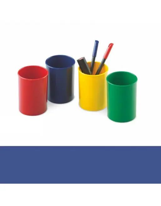 Cubilete de poliestireno opaco. Fabricados en polipropileno, muy resistentes al impacto, especialmente diseñados para uso escolar. Colores sólidos: rojo 03, verde 04, amarillo 05, azul 07. Medidas: 78 mm. de diámetro y 10 cm. de alto.