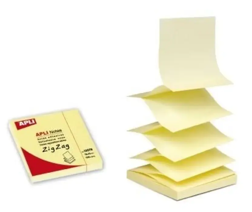 BLOC NOTAS ADHESIVAS APLI 100H 75X75MM ZIG ZAG AMARILLO Disponible Ahora