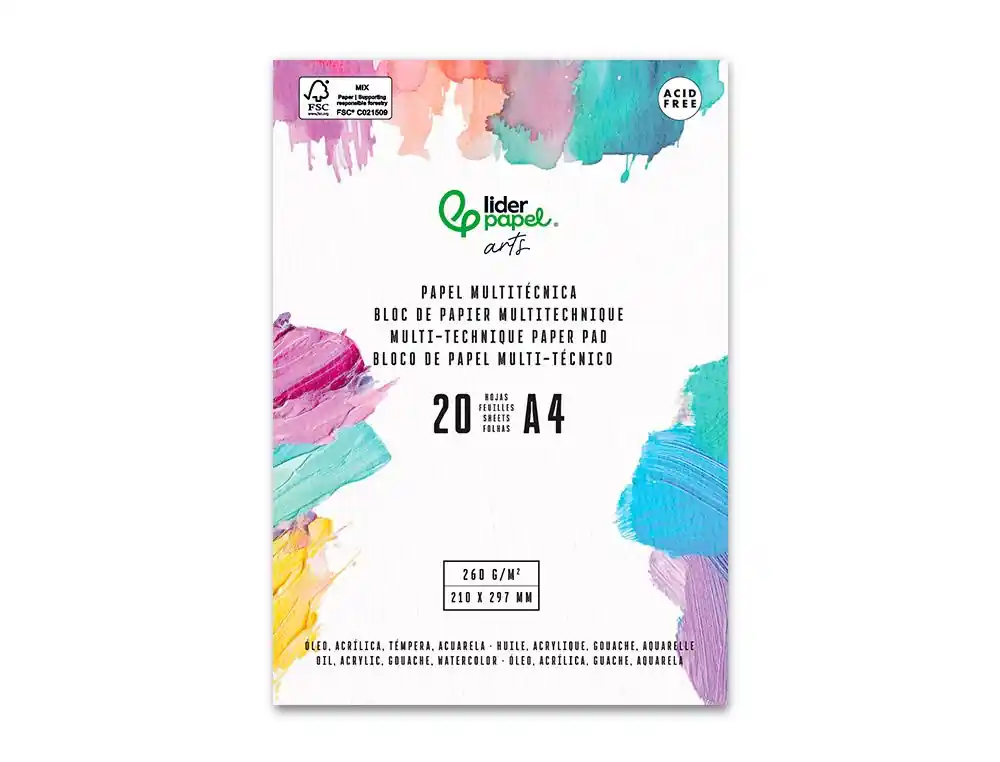 Bloc papel multitecnica liderpapel din A4 para acrilico oleo y gouache 20 hojas gramaje 260g/m2 Compra Hoy