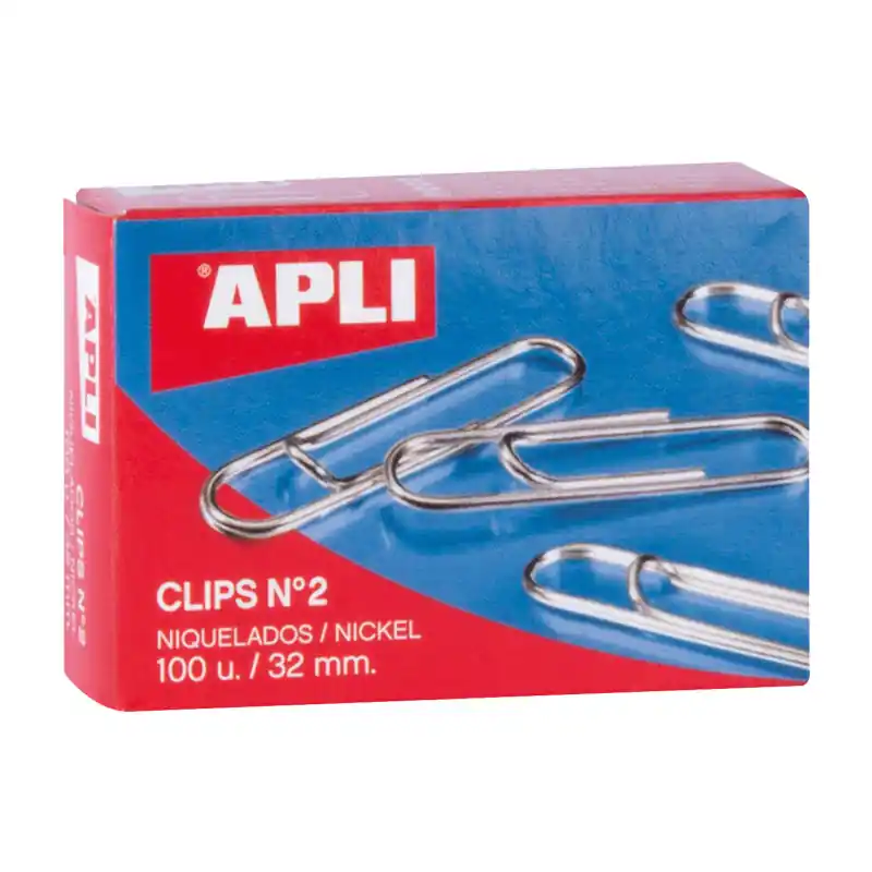CAJA 100 CLIPS APLI Nº 2 NIQUELADOS Mejor Calidad