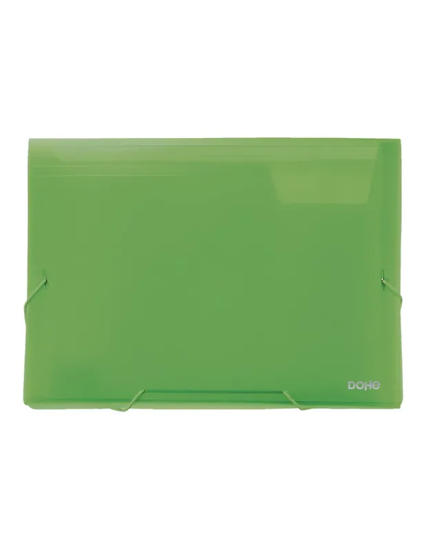 Carpeta fuelle translúcido con 13 departamentos y cierre con gomas elásticos.