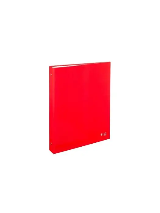 Carpeta de Anillas LUZ de CARCHIVO®, fabricada en cartón forrado brillante, disponible en tamaño A4 con 2 o 4 anillas (25 mm o 40 mm) y en A5 con 4 anillas redondas de 25 mm.