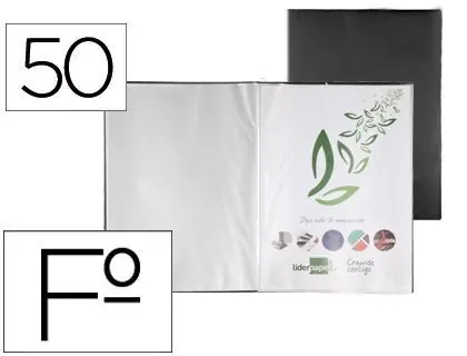 Carpeta Liderpapel Escaparate 50 Fundas Pvc Folio Negro De Moda