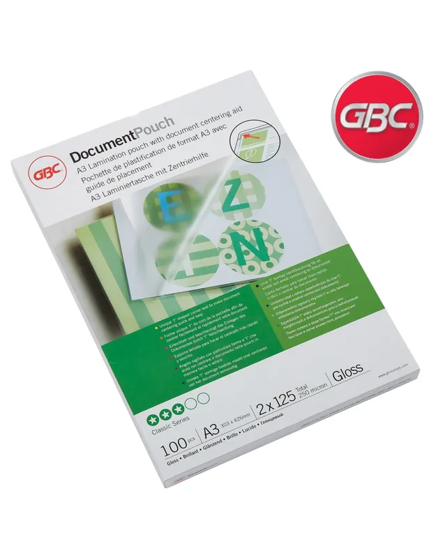 CARTERAS PLASTIFICADO A3 GBC 2 x 125 MICRAS BRILLO 100 Uds. Precio De Oferta