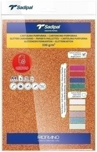 Cartulina Purpurina A4 Sadipal 330G Surtido Colores Intenso Paquete de 5 (Rojo, Azul, Verde, Cobre, Fucsia) Comprar En Línea