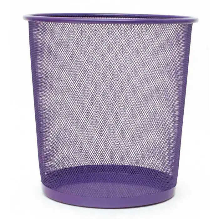 Papeleria metálica de rejilla. Capacidad: 13 litros. Color: morado. Medidas: 27,5 x 21,5 x 28 cm.