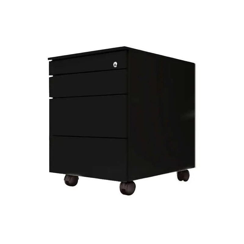 Este Organizador de Escritorio Buck Metálico de 3 Cajones y Lapicero cuenta con un diseño moderno y compacto, con 4 ruedas para mayor movilidad, dos delanteras con frenos para mayor seguridad. Está fabricado en chapa de acero laminada EN-10130 y con un color negro RAL 9005 para dar un toque de elegancia a tu oficina. Medidas: 54,7×42,2×53,5cm.