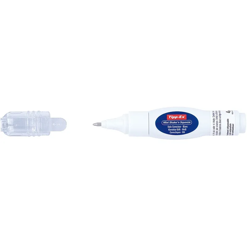Este modelo Tipp-Ex con mecanismo agitar y apretar es un práctico lápiz corrector con una punta fina que garantiza una aplicación precisa. El mecanismo agitar y apretar ofrece el control de un bolígrafo con líquido corrector Premium, diseñado para cubrir errores en cualquier tipo de tinta y papel.