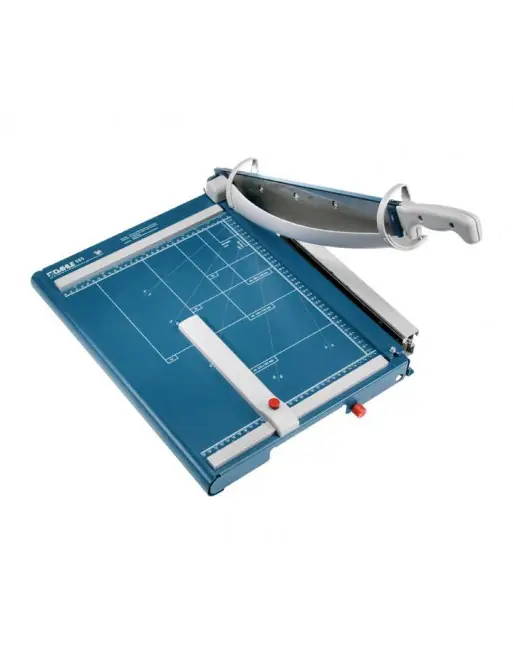 Cizalla de palanca con equipamiento cómodo. Dispositivo de corte de tiras estrechas, que permite cortar tiras muy finas (borde taladrado o perforación). Cuchillas superior e inferior rectificadas de acero de Solingen. Protección perfecta mediante un sistema automático de seguridad. Presión del material mediante prensado automático. Tope angular con división en cm y pulgadas. Tope posterior regulable. Tope anterior extraíble hasta 170 mm. Longitud de corte: 390 mm. Capacidad de corte: 4,0 mm.