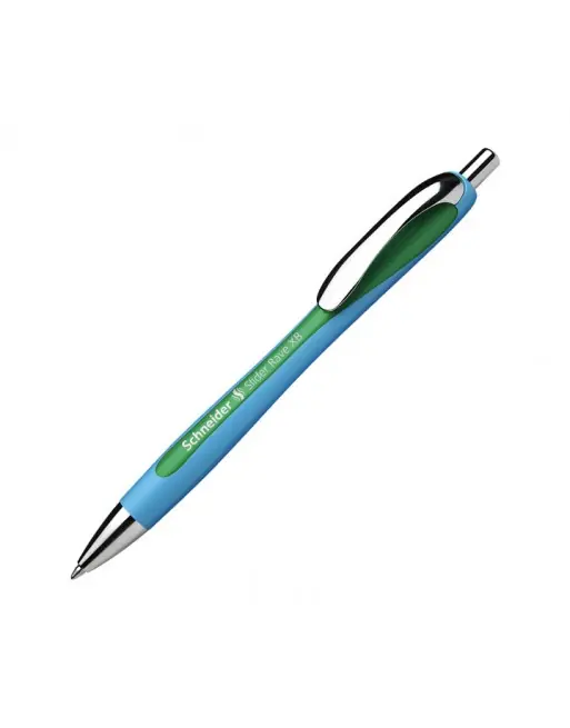 Bolígrafo con tecnología Viscoglide para una escritura extremadamente ligera con sensación deslizante, ancho de trazo grueso (XB). Tinta indeleble según ISO 12757-2. Recambio de gran capacidad Slider 755 XB con punta de acero inoxidable resistente al desgaste y sustituible, garantiza el uso limpio y completo del gran depósito de tinta. La tinta seca rápidamente también sobre papeles lisos, incluso para resaltar con un marcador. Por el inteligente sistema Plug+Play el Slider Rave es adaptable a diferentes recambios. El cuerpo revestido de caucho procura una postura para escribir relajadamente, evitando el cansancio de la mano. El clip es de metal estable. El Slider Rave se fabrica sin emisiones CO2.