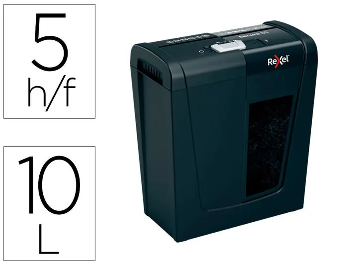 Destructora de Documentos Rexel Secure S5 Eu Capacidad 5 Hojas Grapas Clips Tarjetas y Cd Papelera 10 L Últimas Unidades
