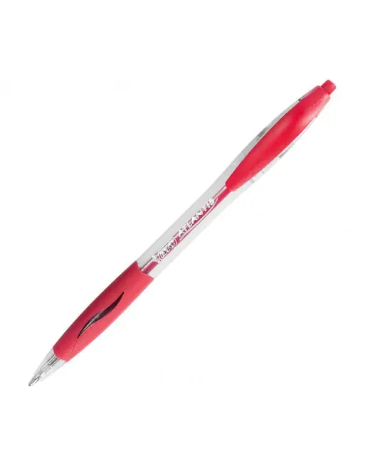 Bolígrafo retráctil con nivel de tinta visible gracias a su cuerpo transparente. Tinta base aceite. Empuñadura de caucho. Diámetro de bola: 1,0 mm. Ancho de trazo 0,4 mm.
