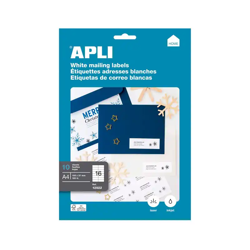 Organiza y clasifica con nuestras etiquetas adhesivas Apli de 105x37mm. Pack de 10 hojas para un etiquetado práctico.