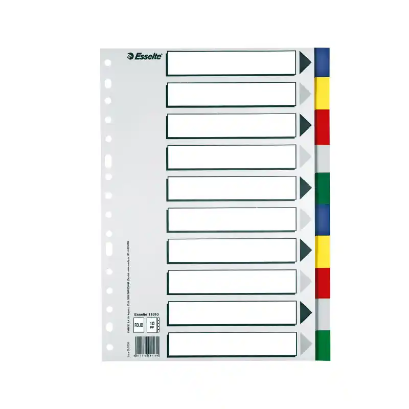 Devolución Gratuita SEPARADORES ESSELTE 10 POSICIONES Fº COLORES VIVOS