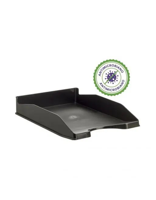 Bandeja antimicrobiana Steritouch Archivo 2000 opaca. Fabricado en poliestireno de gran calidad con protección antimicrobiana las 24 horas. Superficie más higiénica, segura y duradera, al inhibir el crecimiento de microorganismos permite una mayor durabilidad en el tiempo. Válida para formatos DIN A4 y folio. Apilable en 3 posiciones. Hendidura frontal para un fácil acceso de los documentos. Ideales en entornos donde la higiene es crítica y el tránsito elevado, tales como hospitales, colegios, instalaciones públicas, oficinas y hogares privados. Dimensiones: 345x255x60 mm. COVID