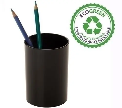 Cubilete de gran capacidad para lápices, fabricado con materias primas 100% recicladas y reciclables. Ideal para tener lápices, bolÃgrafos o reglas, siempre ordenados. Medidas: 105 x 75 mm.
