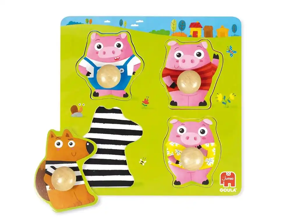 ¡Regala a tus pequeños la alegrÃa de jugar y aprender con el Puzle Goula de madera de 3 Cerditos!