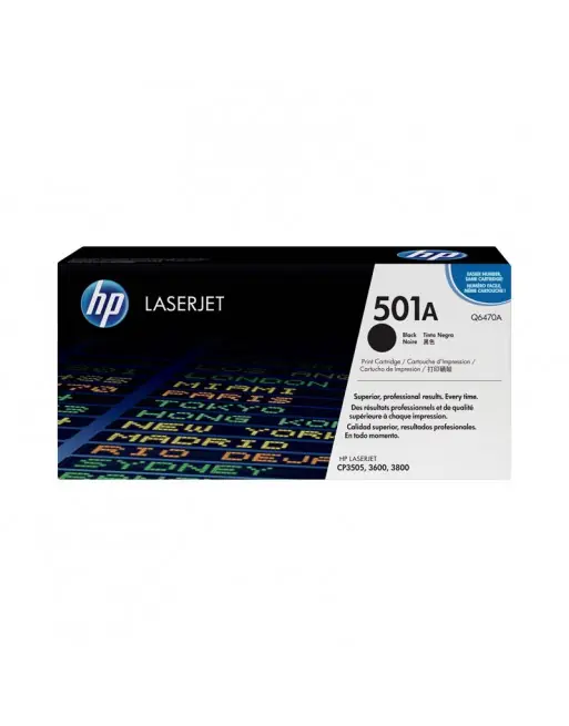Compatible con los siguientes modelos: HP: COLOR LJ 3600, COLOR LJ 3600DN, COLOR LJ 3800, COLOR LJ 3800DN, COLOR LJ 3800DTN, COLOR LJ 3800N Cartucho de tóner original LaserJet HP 501A negr