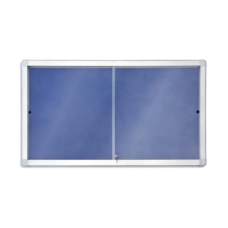 Vitrina horizontal interior. Con marco de aluminio extruido, ligera y de fácil instalación. Superficie tapizada. Puertas correderas fabricadas en cristal de seguridad, ideal para espacios reducidos. Se suministra con cerradura y 2 llaves universales. Incluye accesorios para la fijación a la pared. Dimensiones: 138x99cm.