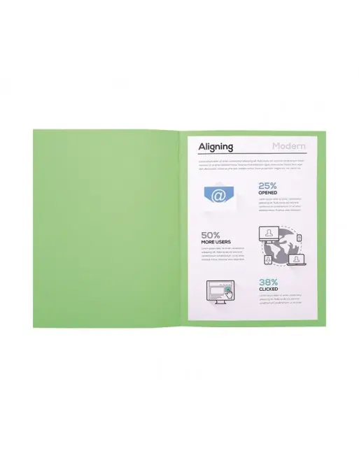 Subcarpeta fabricada en cartulina 100% reciclada de 220 g. Dimensiones: 24 x 32 cm. Aptas para formatos A4 y Folio.