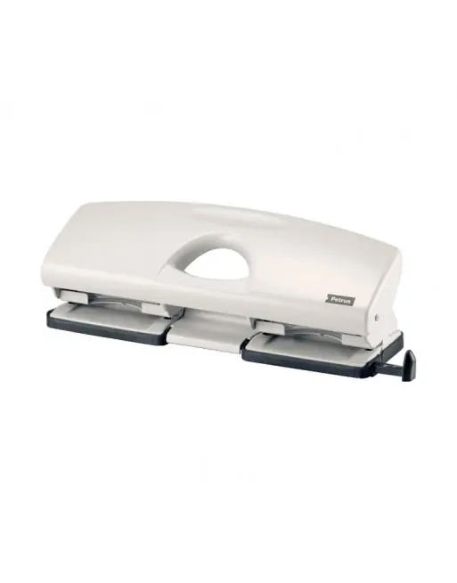 Taladro de cuatro agujeros. Incorpora regleta tope de papel. Perfora hasta 16 hojas. Perforar hojas de forma rápida y sencilla para carpetas con mecanismo de 4 anillas.