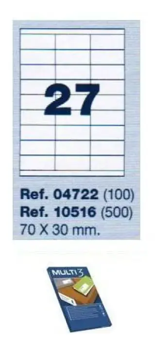 ETIQUETAS ADHESIVAS MULTI3 04722 70X30 C/100H Últimas Unidades