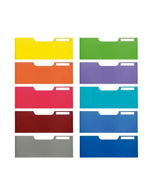 10 frontales (1 por color). Permiten cambiar los colores de 10 cajones para codificar la clasificación de correo y archivos.