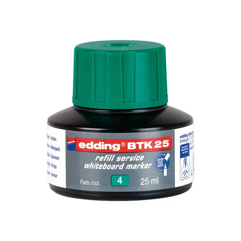 No esperes más y disfruta de los beneficios de esta tinta Edding BTK25 de 25ml para rellenar tus marcadores de pizarra blanca. ¡Compra ya!
