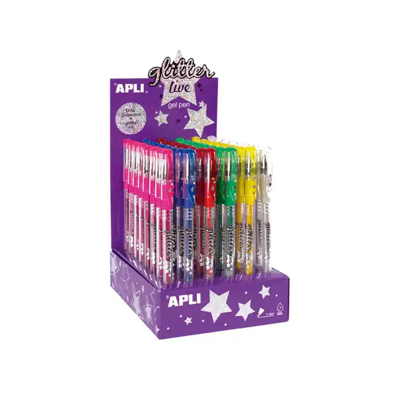 EXPOSITOR 48 BOLÍGRAFOS APLI GLITTER LIVE Envío Internacional