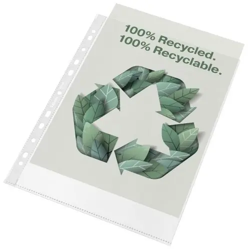 Funda multitaladro con refuerzo fabricada con PP 100% reciclado de 70µ. Ideal para guardar, ordenar y conservar documentos durante más tiempo, el film copy safe evita que texto pase del papel al plástico. Medidas: 302 x 230 x 1 mm.