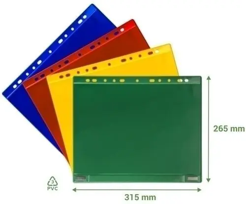 Funda magnética multitaladro (11 taladros) con apertura por el lado corto, en la parte inferior tiene dos imanes de neodimio integrados, la parte delantera es de PVC transparente antirreflejos. Una funda fabricada en PVC flexible de 350µ libre de ftalatos, que permite la visualización de las directrices laborales. Aptas para el archivador magnético (181111). Medidas: 265 x 315 mm.