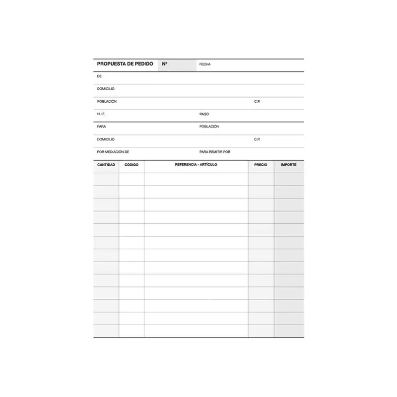 – Bloc de pedidos impresos en papel autocopiativo