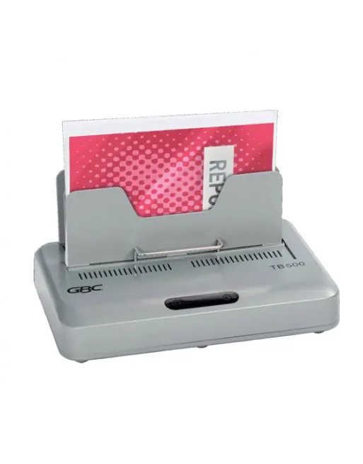 Diseñada para satisfacer las exigencias de un uso de volumen medio a alto, la encuadernadora térmica GBC TB500 ofrece un acabado pulido de -encuadernación perfecta- para documentos y presentaciones. Los controles, sencillos e intuitivos, incorporan una función de desconexión automática cuando no hay ningún documento cargado. Con capacidad para encuadernar hasta 500 hojas A4 de 70 g/m2 a la vez o varias más pequeñas simultáneamente, esta encuadernadora térmica garantiza eficacia y versatilidad para el montaje profesional de documentos. Color plateado.