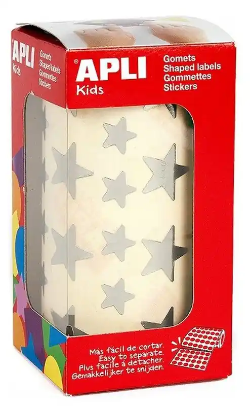 Gomets rollo estrellas 12,5 y 19,5 mm plata Moderno