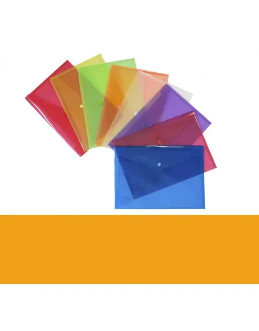 Sobre 1/4 apaisado fabricados en polipropileno con apertura superior y cierre de broche.