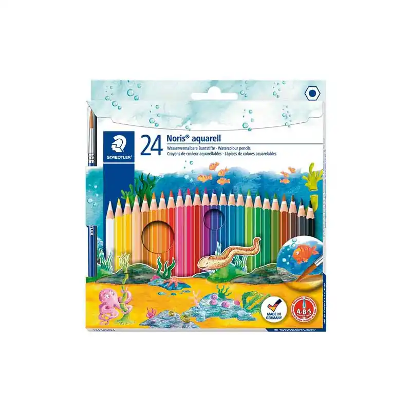 Consigue tu Estuche de 24 Lápices Staedtler Noris Acuarelables y empieza a darle vida a tus dibujos y manualidades. Estos lápices acuarelables tienen una excelente relación calidad-precio, y son fabricados con madera certificada, procedente de bosques de gestión sostenible para conservar el medio ambiente. ¡No esperes más y empieza a colorear!