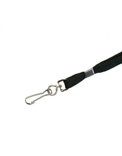 Cordón con mosquetón de enganche sujeta identificadores. Cómodo y suave.