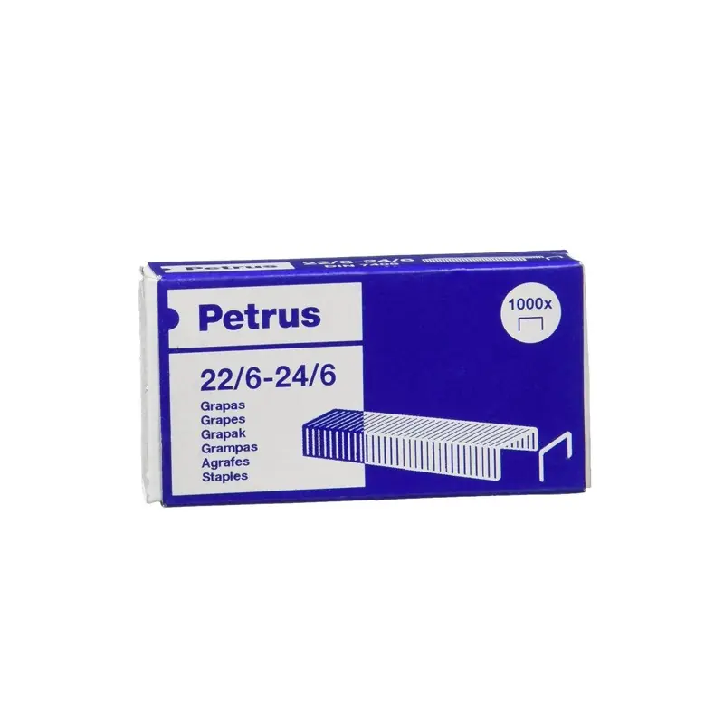 Asegura tus documentos con las grapas Petrus galvanizadas, en tamaño 22/6 y un paquete de 1000 unidades para una sujeción firme y duradera.