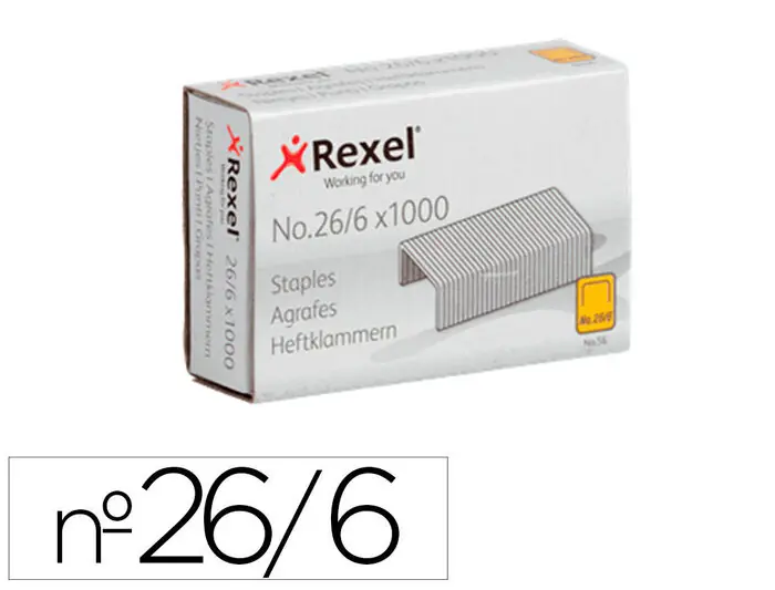 Grapas Rexel 26/6 mm Galvanizada Caja de 1000 Unidades Moderno