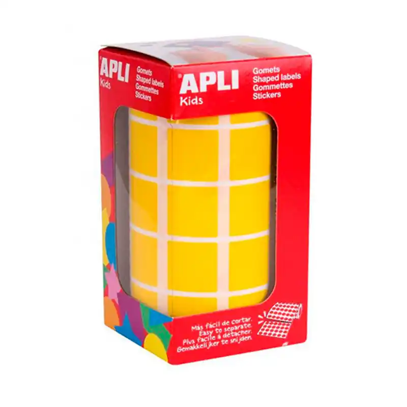 Gomets Apli Cuadrado Amarillo 20 mm Caja: Añade un toque audaz con estos gomets cuadrados amarillos de 20 mm. La caja proporciona una cantidad generosa para tus necesidades de etiquetado y decoración en el hogar, la escuela o la oficina.
