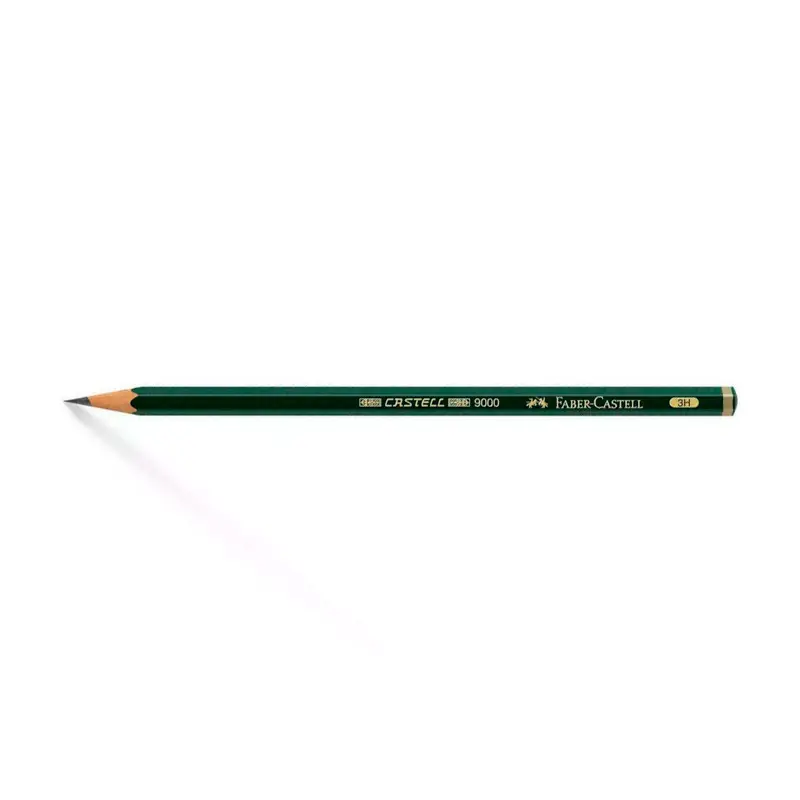 Logra líneas finas y precisas con el lápiz hexagonal 9000 3H de Faber Castell, ideal para dibujo técnico y trazos delicados.