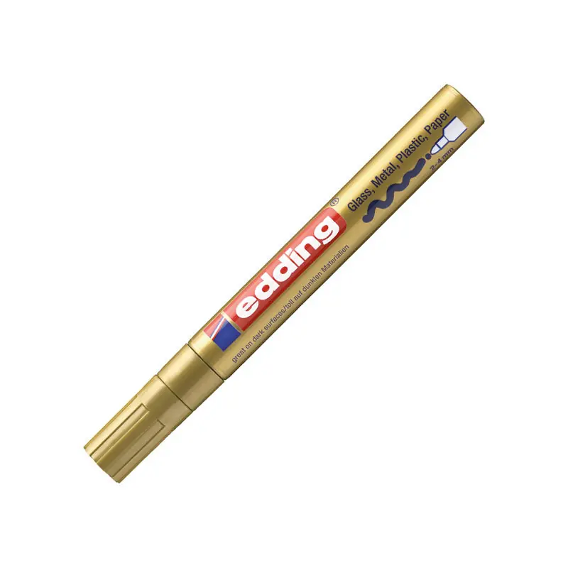 ¡Añade un toque brillante y resistente al agua a tus proyectos con el Marcador permanente Edding 750! Este marcador de tinta opaca brillante está diseñado con una punta cónica para crear un trazo de 2-4 mm con una gran cobertura incluso sobre materiales oscuros y transparentes, como metal, vidrio y plástico. La tinta seca rápidamente, es resistente a la intemperie y al desgaste y extremadamente resistente a la acción de la luz. Y todo esto con una fórmula casi inodora, sin adición de tolueno o xileno. El cuerpo de aluminio de alta calidad es resistente, duradero y compacto para llevar a cualquier lugar.