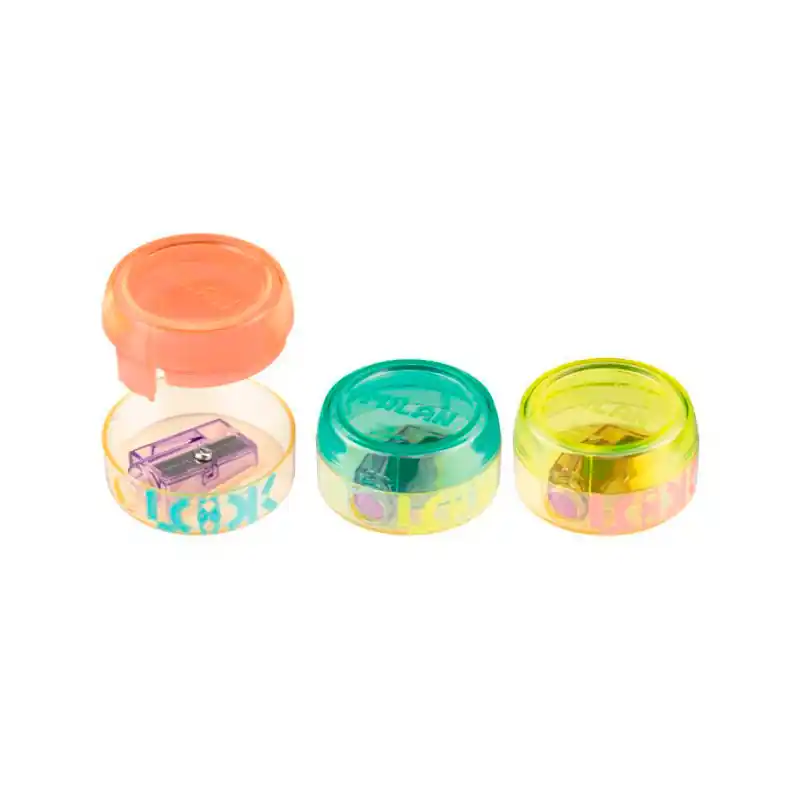 Afilalápices con depósito enroscado diseño SPIN, serie New Look. El sacapuntas tiene una hoja de acero afilada y resistente, ideal para todo tipo de lápices. Sacapuntas con hoja de seguridad: este sistema evita que la hoja se separe del cuerpo del sacapuntas. Diseño original creado por el departamento de I+D de MILAN. Serie New Look: un juego de materiales transparentes y colores brillantes que permite ver el interior de los productos, con sus piezas y mecanismos.