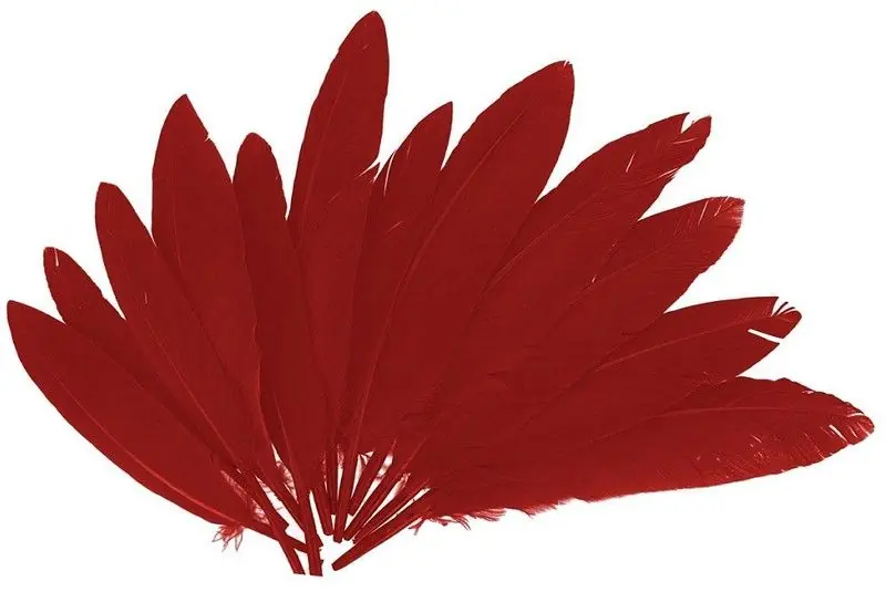 Plumas naturales teñidas con colores brillantes. Ligeras y versátiles. Se pueden coser o pegar con cola, grapas, cinta adhesiva, etc.