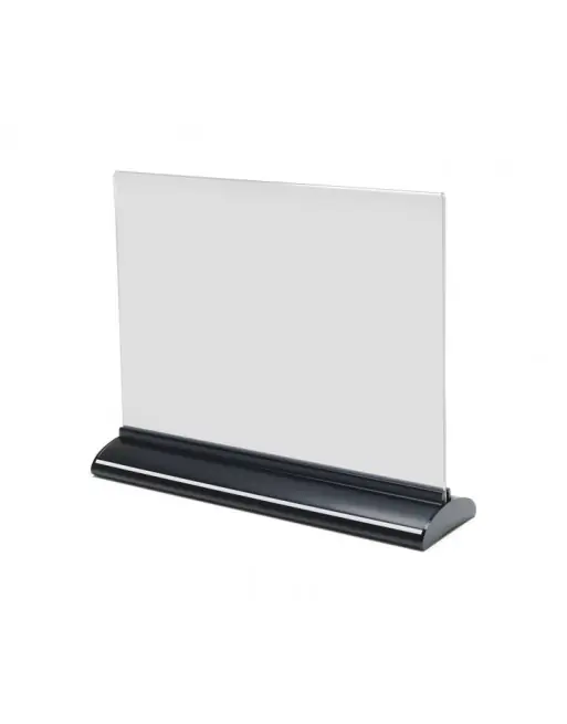 Marco expositor de sobremesa para múltiples usos. Con base ancha y estable, portaláminas fabricada en metacrilato PMMA.